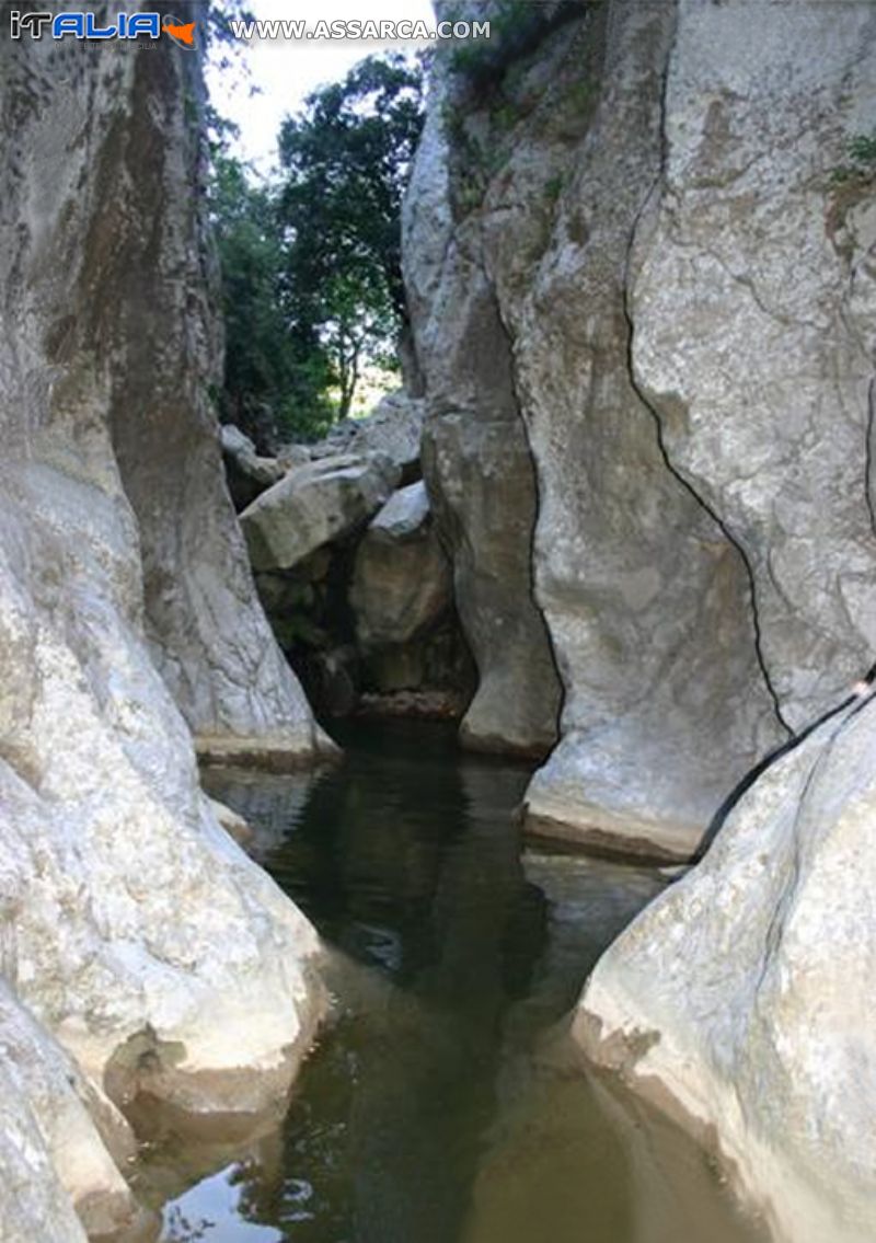 Supra lu scjumi di Gazzara, tra li du massi bianchi da muntagna,
